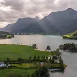 Deze gesitueerde in Stryn Landelig Hus Med Fin Badestrand Og Turomrade. Villa bevindt zich op afstand van 4 km van Storskredfjellet i Stryn en beschikt over een terras met uitzicht op het meer.